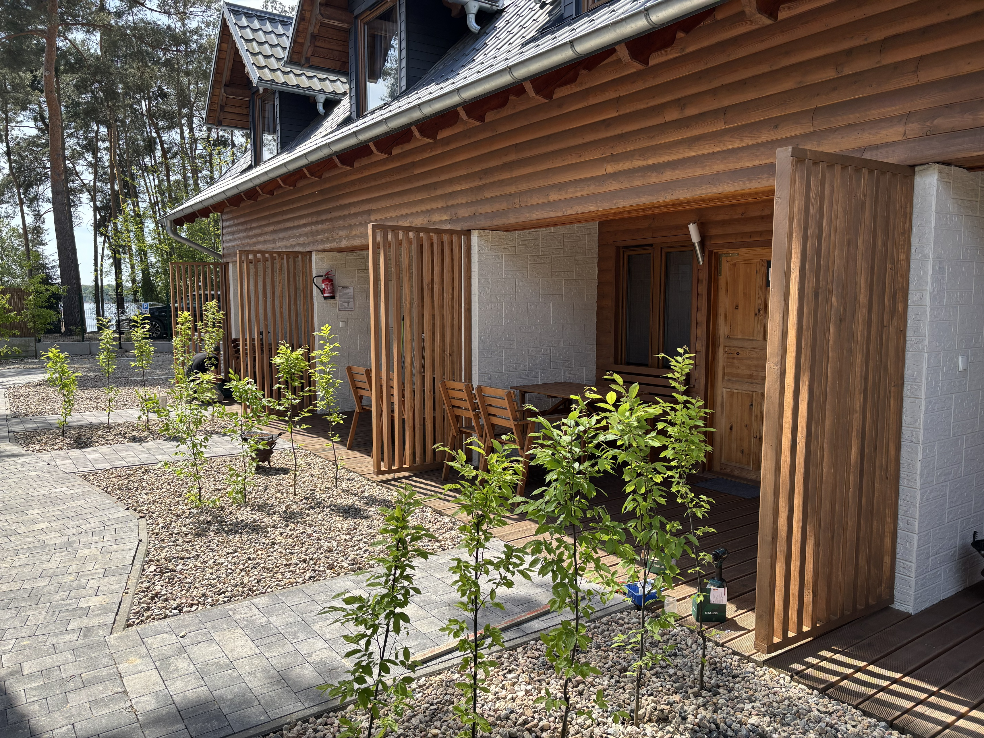 Domki drewniane Premium Wieleń to idealne rozwiązanie na nocleg nad jeziorem w większym gronie.
